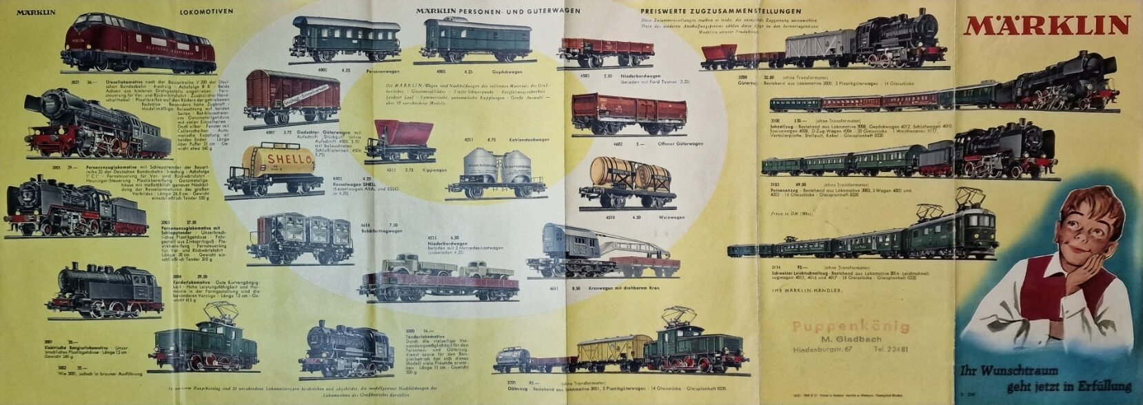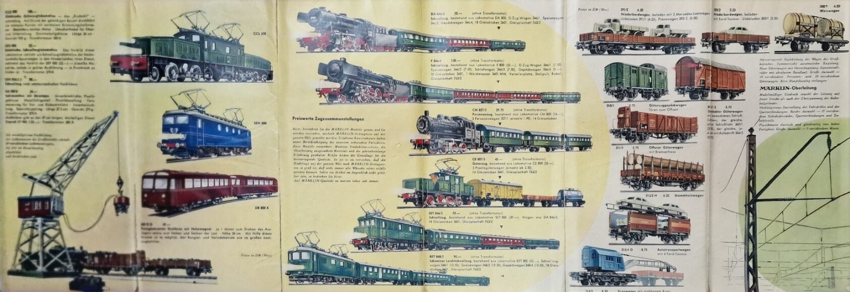Es waren noch die Fünfziger, als Märklin mit seinem Artikelnummernsystem an die Grenzen stieß. Die Zeiten der Blechmodelle mit stark gekürzten Blechwagen sollten gezählt sein. Die Entbehrungen und die Materialknappheit, die sich noch bis Mitte der fünfziger an den Verpackungen ablesen ließ sollte enden und der Traum der Mädels und Buben von der eigenen elektrischen Eisenbahn war nicht mehr nur den amerikanischen GI´s vorbehalten.