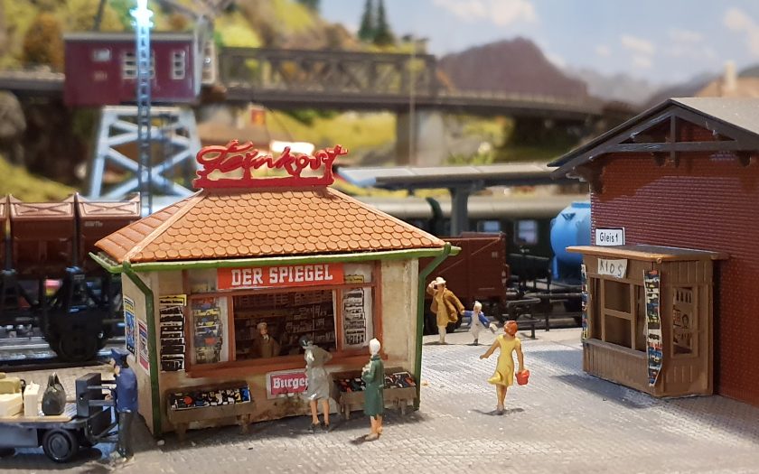 WeiterlesenDer alte Faller Feinkostkiosk aus den 60ern lief mir auf einem Flohmarkt in Ostfriesland über den Weg. Etwas mehr Ausschmückung und die Platzierung auf dem breiten Bahnsteiggelände von Katzenbach machen die Sache attraktiv.