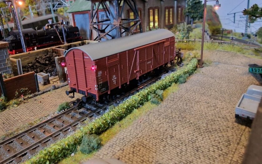 WeiterlesenDer Ganzzug, bestehend aus Güterwagen der Gattung Gl Dresden benötigt natürlich einen Wagen mit Schlussbeleuchtung. Da ich den Wagen 00742-07 doppelt haben, konnte ich das Risiko gehen und diesen für eine Bastelei verwenden. So bestellte