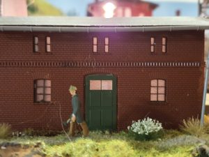 Im Oktober 2019 war an der vorderen Ecke vor dem Betriebswerk immer noch eine kahle Stelle. Also nix wie hin zum Händler meines Vertrauens. Dank meiner aufmerksamen Frau wurde ich von meier ersten Entscheidung für das Faller Modell abgebracht, denn Sie fand dieses schöne Modell von Auhagen im Regal der Modellbahnstation Oldenburg. Der Kellereingang ist ein wirklich schönes Detail und der Schuppen passt sich ebenfalls perfekt in die Ecke ein.