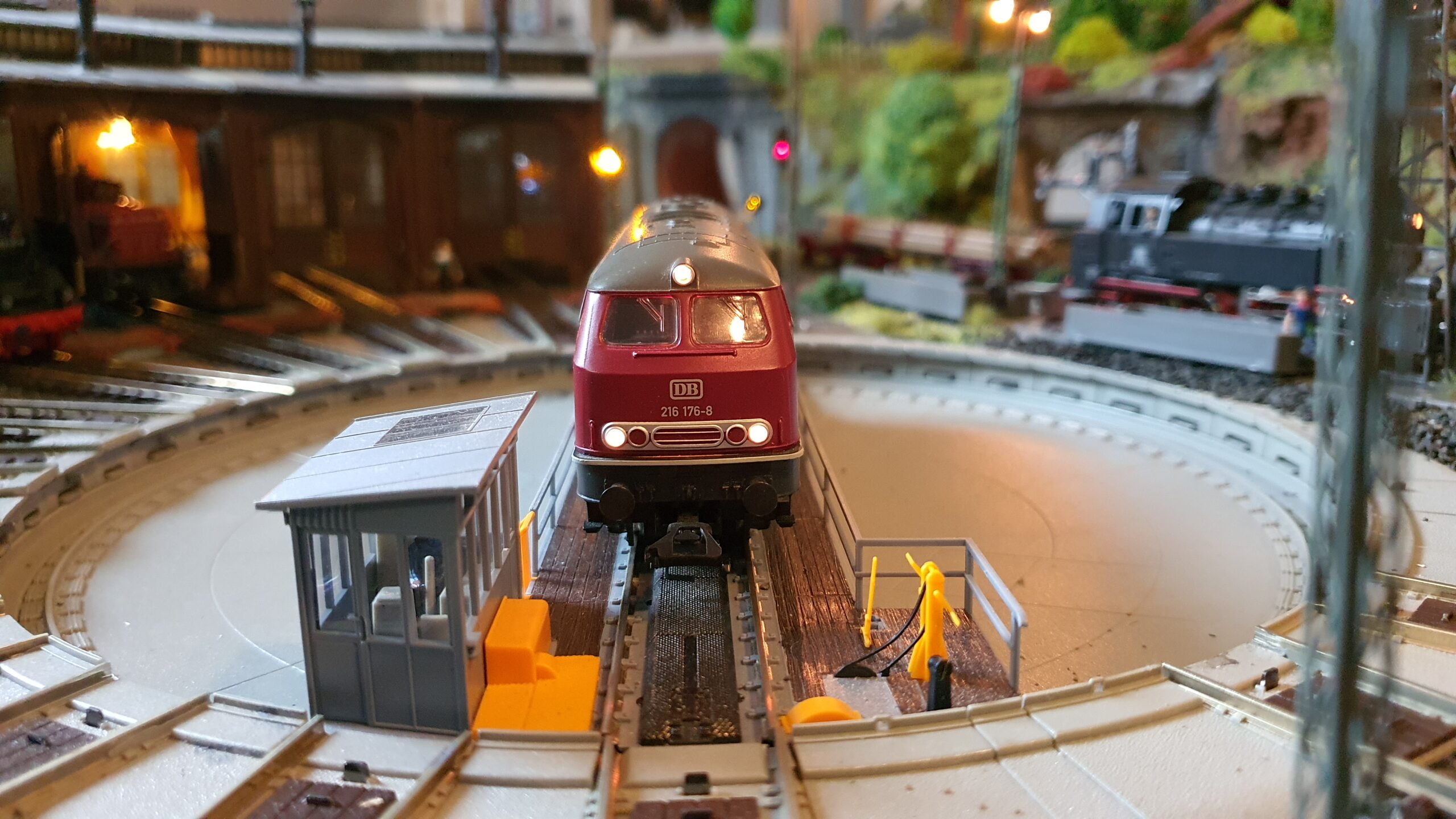 Kürzlich gab es mal wieder Zuwachs im BW. Einen Schuppenplatz belegt nun die V 216 178-8 in der DB Version um 1970. Das Modell entstammt einer Märklin Startpackung 29710 „Güterzug der 70er Jahre“. Die Lokomotive ist mit einem Digital-Decoder und geregeltem Hochleistungsantrieb ausgestattet. 2 Achsen angetrieben, Haftreifen. Fahrtrichtungsabhängig wechselndes Dreilicht-Spitzensignal konventionell in Betrieb, digital schaltbar. Kurzkupplungen.