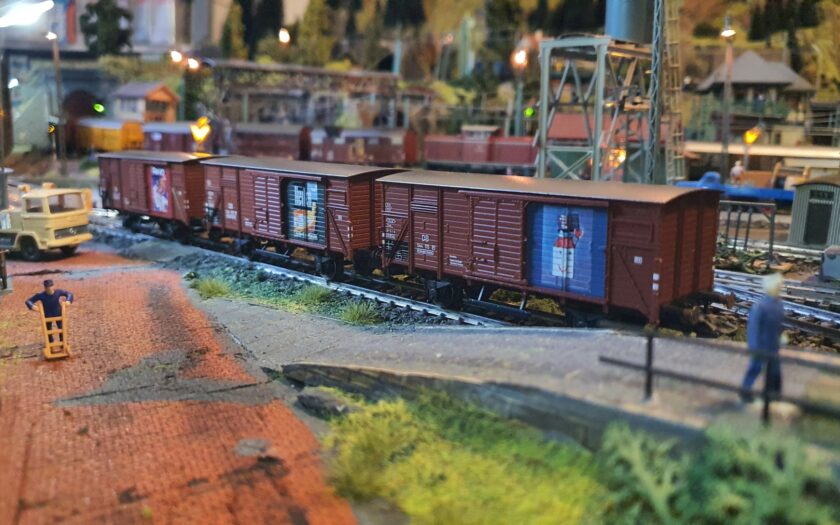Der Güterbahnhof Katzenbach hat 3 neue Wagen im Zulauf, die mit Werbung der 50er Jahre daherkommen. Damals nannte man das noch Reklame und hier geht es im Speziellen um Waschmittel der Fa. Henkel. Das Märklin Set 48789 „Historische Marken“ wurde als Sonderauflage für Eurotrain gefertigt und enthält 3 Güterwagen der Verbandsbauart G 10 mit den Wagennummern 544 072, 544 114, 544 115. Bedruckt sind die Wagen mit alten Werbeplakaten der Firma Henkel und deren Produkte Fewa, Henko und Pril. Ob die Werbesprüche der damaligen Zeit die „moderne Hausfrau“ wirklich angesprochen haben weiß man nicht. So heißt es unter dem Henko Plakat „Gut eingeweicht ist halb gewaschen“ und bei Pril sollte Frau damals noch an den Frühjahrsputz denken.