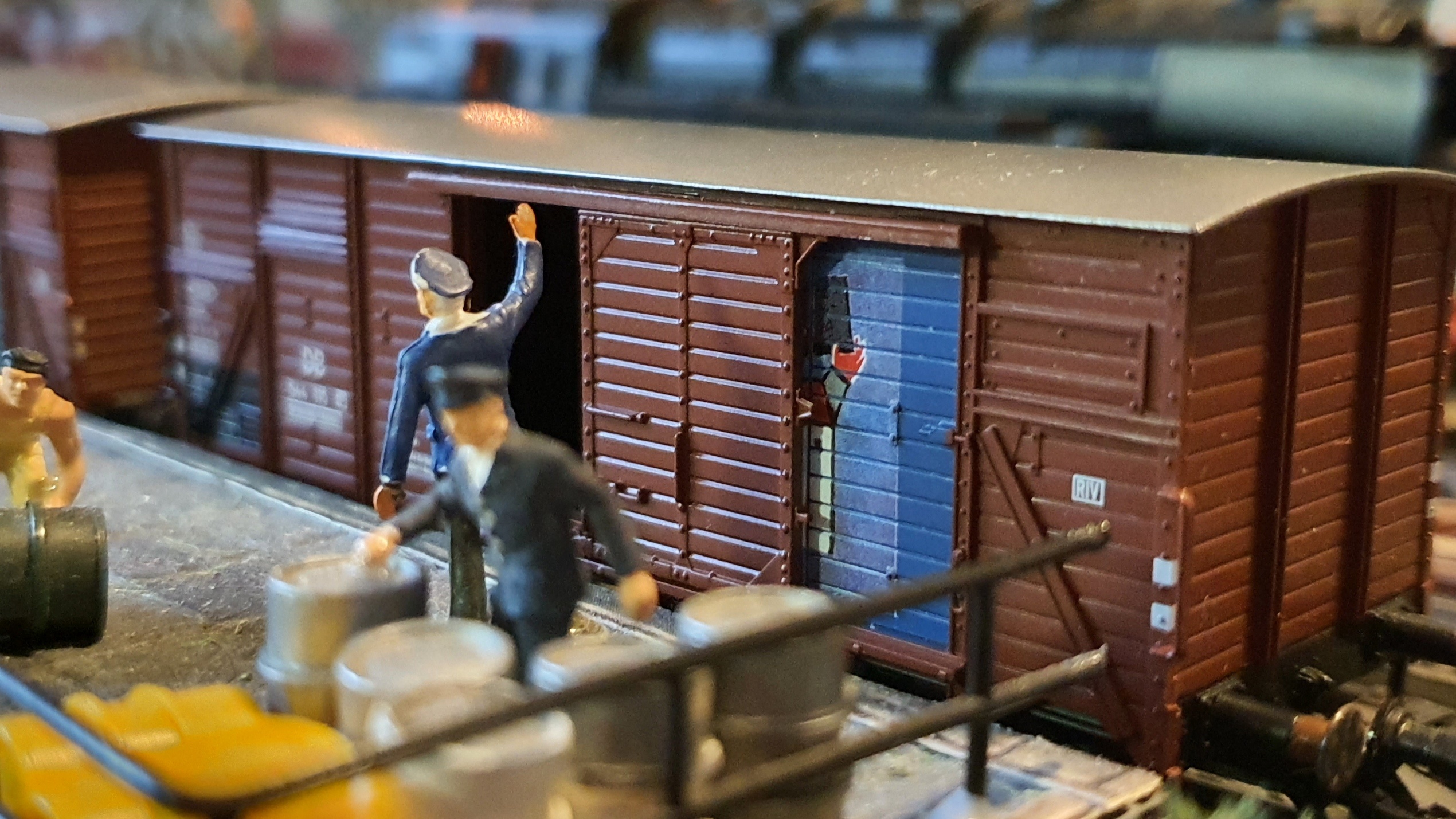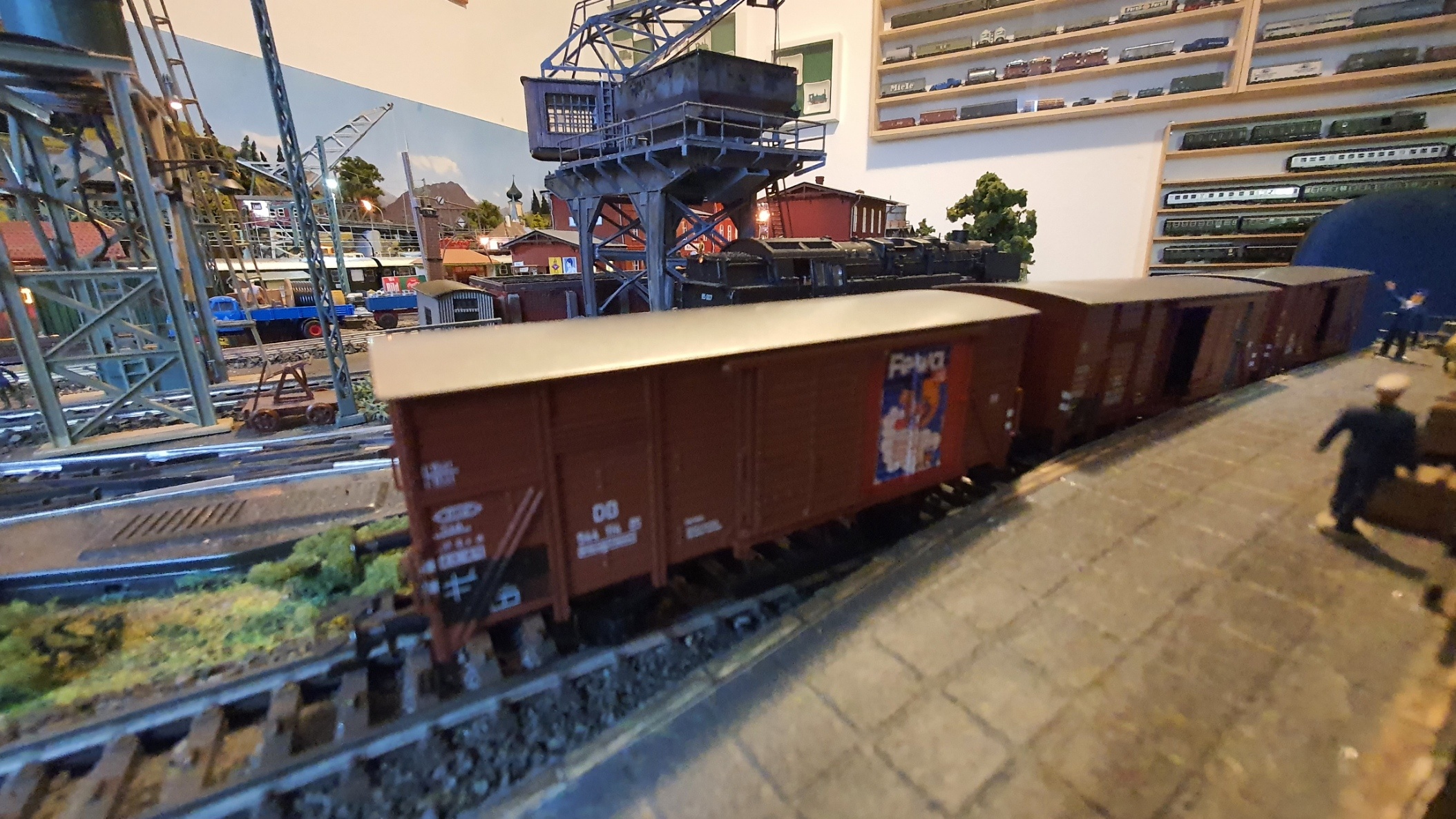 Der Güterbahnhof Katzenbach hat 3 neue Wagen im Zulauf, die mit Werbung der 50er Jahre daherkommen. Damals nannte man das noch Reklame und hier geht es im Speziellen um Waschmittel der Fa. Henkel. Das Märklin Set 48789 „Historische Marken“ wurde als Sonderauflage für Eurotrain gefertigt und enthält 3 Güterwagen der Verbandsbauart G 10 mit den Wagennummern 544 072, 544 114, 544 115. Bedruckt sind die Wagen mit alten Werbeplakaten der Firma Henkel und deren Produkte Fewa, Henko und Pril. Ob die Werbesprüche der damaligen Zeit die „moderne Hausfrau“ wirklich angesprochen haben weiß man nicht. So  heißt es unter dem Henko Plakat „Gut eingeweicht ist halb gewaschen“ und bei Pril sollte Frau damals noch an den Frühjahrsputz denken.