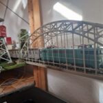 Auf den Fotos ist ein Zug aus 4 INOX Wagen 450 und der BB 9223 zu sehen, wie er die Bogenbrücke auf dem Vintage Layout überquert.