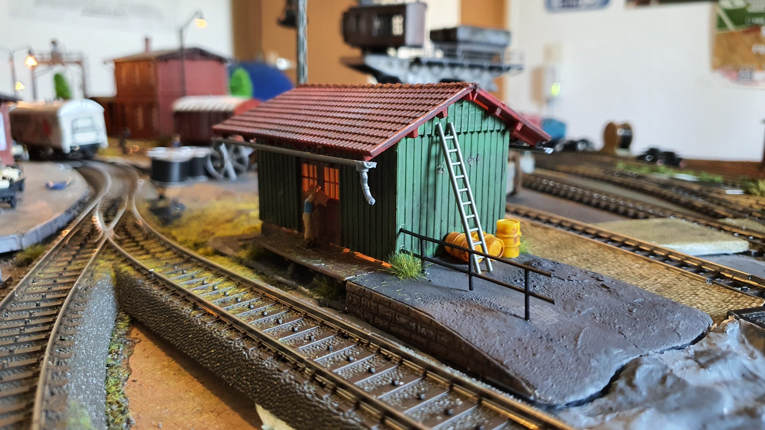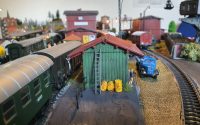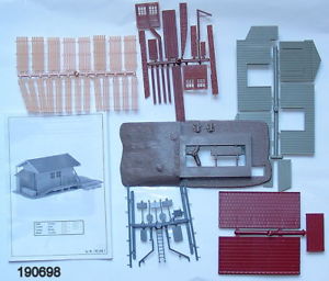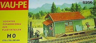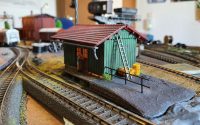 Auf dem Bahnhofsgelände von Katzenbach fehlte immer noch ein Güterschuppen. Der alte Güterschuppen von Vau-Pe Artikel Nummer 8206 kam der Bahnlogistik ganz recht. Lag er doch lange gebaut und ungenutzt neben den anderen Modellhaus „Wracks“ in einer Curver Kiste. Die gleiche Form war mir in einem Faller Katalog mit der Artikelnummer 190698 begegnet. Allerdings brachte Faller die Form nicht in den doch reichlich poppigen Farben von Vau-Pe. Das führte dazu, dass der lädierte Bausatz farblich behandelt und mit ein paar Details aufgemöbelt wurde. Gleichzeitig tauchte die Frage auf, wie die Form von Vau-Pe zu Faller gekommen war.