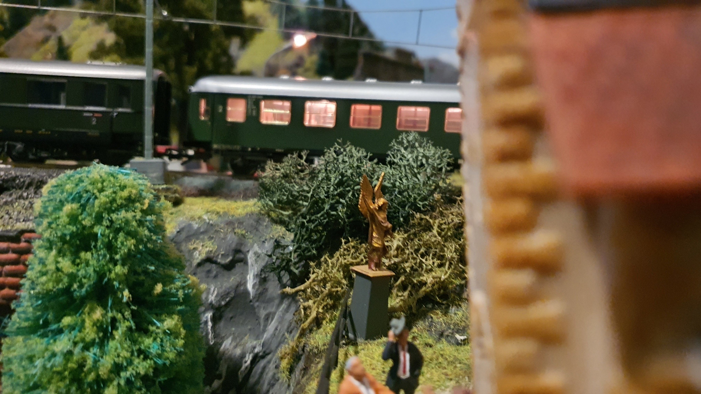 Pfarrer Tunichtgut von der Gemeinde St. Katzenbach war gerade mit seiner Messe fertig. Als er vor dem Kirchenportal seine Schäfchen segnen wollte, sah er den kurios anmutenden Zug. Da zog eine E10 "Bügelfalte", wie man sie sonst nur von dem Luxuszuge mit Namen "Rheingold" kannte zwei ganz normale Schnellzugwagen. Die eigentliche Überraschung folgte danach. Ein ein Schürzenwagen und ein Salonwagen gefolgt von einem noch merkwürdiger anmutenden Wagen, der an einen Gepäckwagen erinnerte. Jener Wagen und der Salonwagen hatten eine Art Blitzableiter auf dem Dach, was aber irgendwie auch nach Antennentechnik aussieht. Sollte das der legendäre Zug sein, mit dem "der Alte" nach Moskau gefahren ist.
