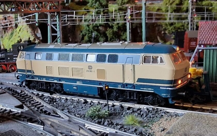 WeiterlesenDiesel-Mehrzwecklokomotive der DB (Deutsche Bundesbahn) Baureihe 216 um 1975 Epoche IV im neuen Farbschema Oceanblau / Elfenbein