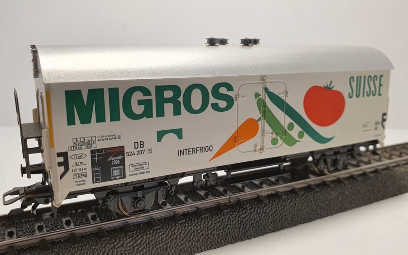 Kühlwagen Bauart Tehs 50, mit eingesetzten Dachlüftern. Angesetzte Aufstiege an den Stirnseiten.