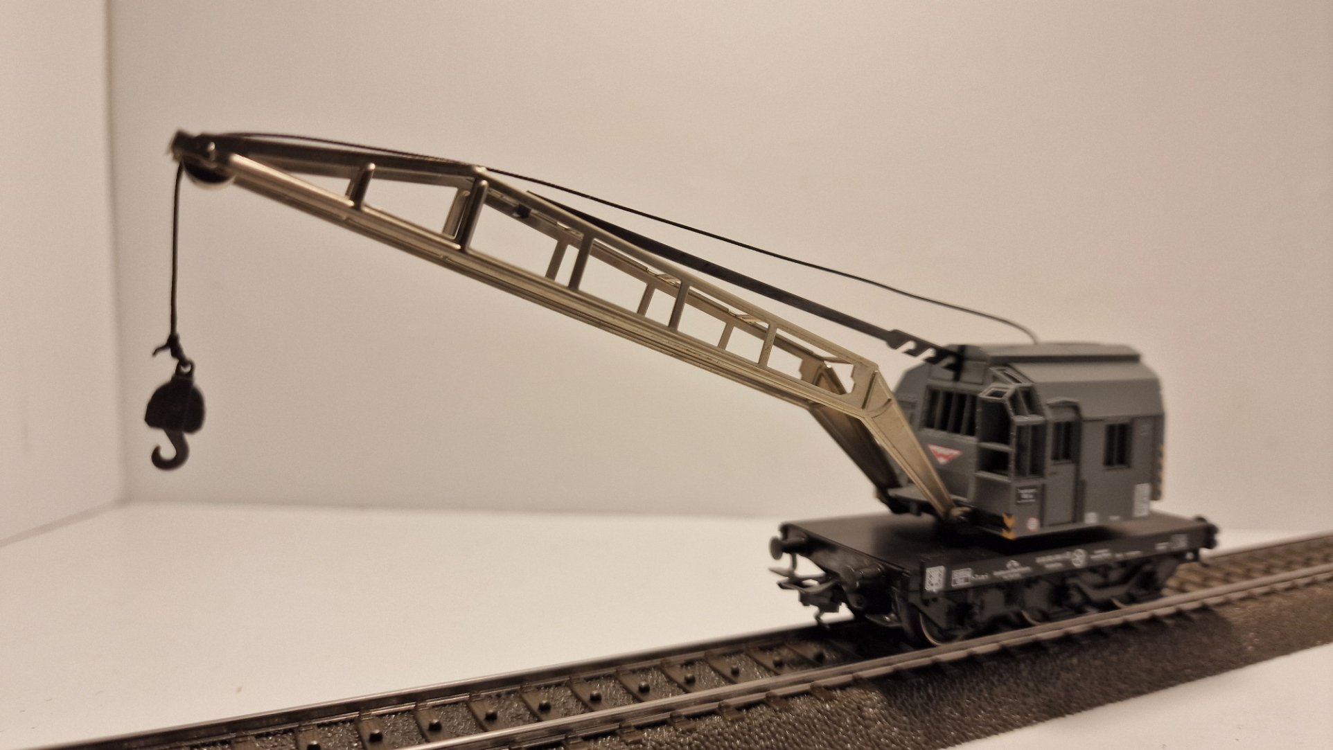 Kranwagen aus Bauzugpackung „Wiebe Bauzug“ hergestellt für Conrad zugehörig ist ein gelber Schutzwagen mit Wiebe Decals.