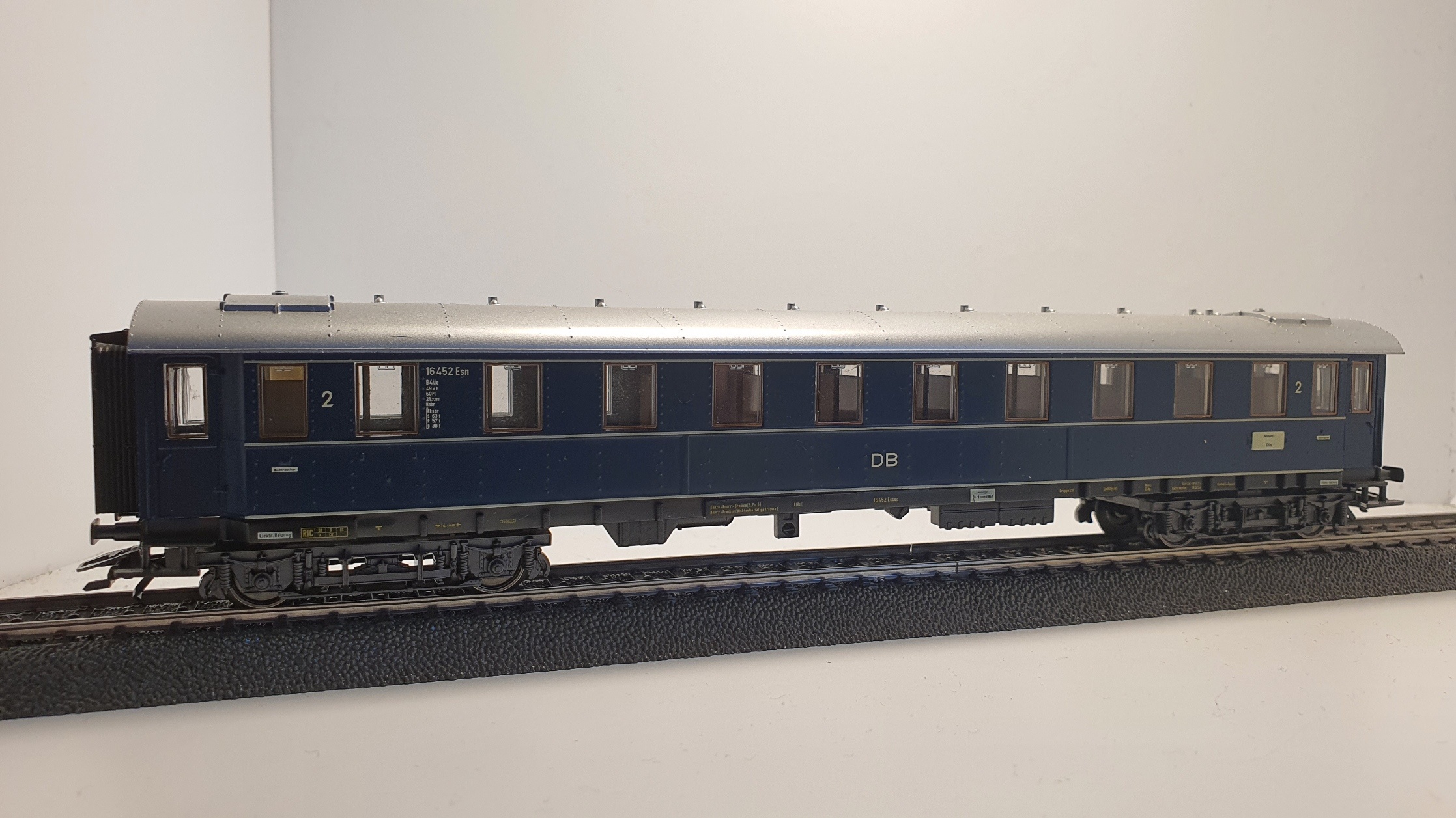 Zuglauf Hannover – Köln. Der Wiederaufbau nach dem 2. Weltkrieg betraf auch die Bahn. Zur Verbindung der großen Städte der Bundesrepublik wurde in den 50er Jahren das F-Zugnetz eingerichtet, Vorgänger der TEE- und IC-Verbindungen. Die DB musste dafür zunächst auch auf altes Wagenmaterial der Reichsbahn zurückgreifen. Grundlage des Wagens ist Artikel 4276 in grüner Farbgebung.