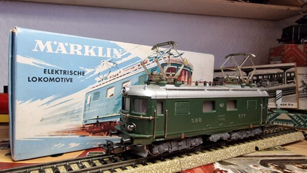 Nachbildung einer leichten schweizerischen Schnellzuglokokomotive.