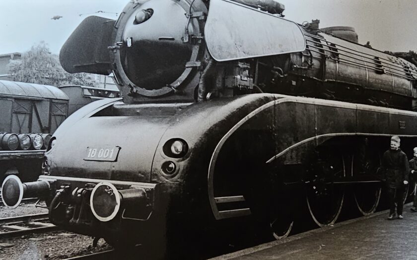 Schnellzug-Dampflokomotive Baureihe 10 der Deutschen Bundesbahn (DB). Mit Öltender und Öl-Hauptfeuerung.