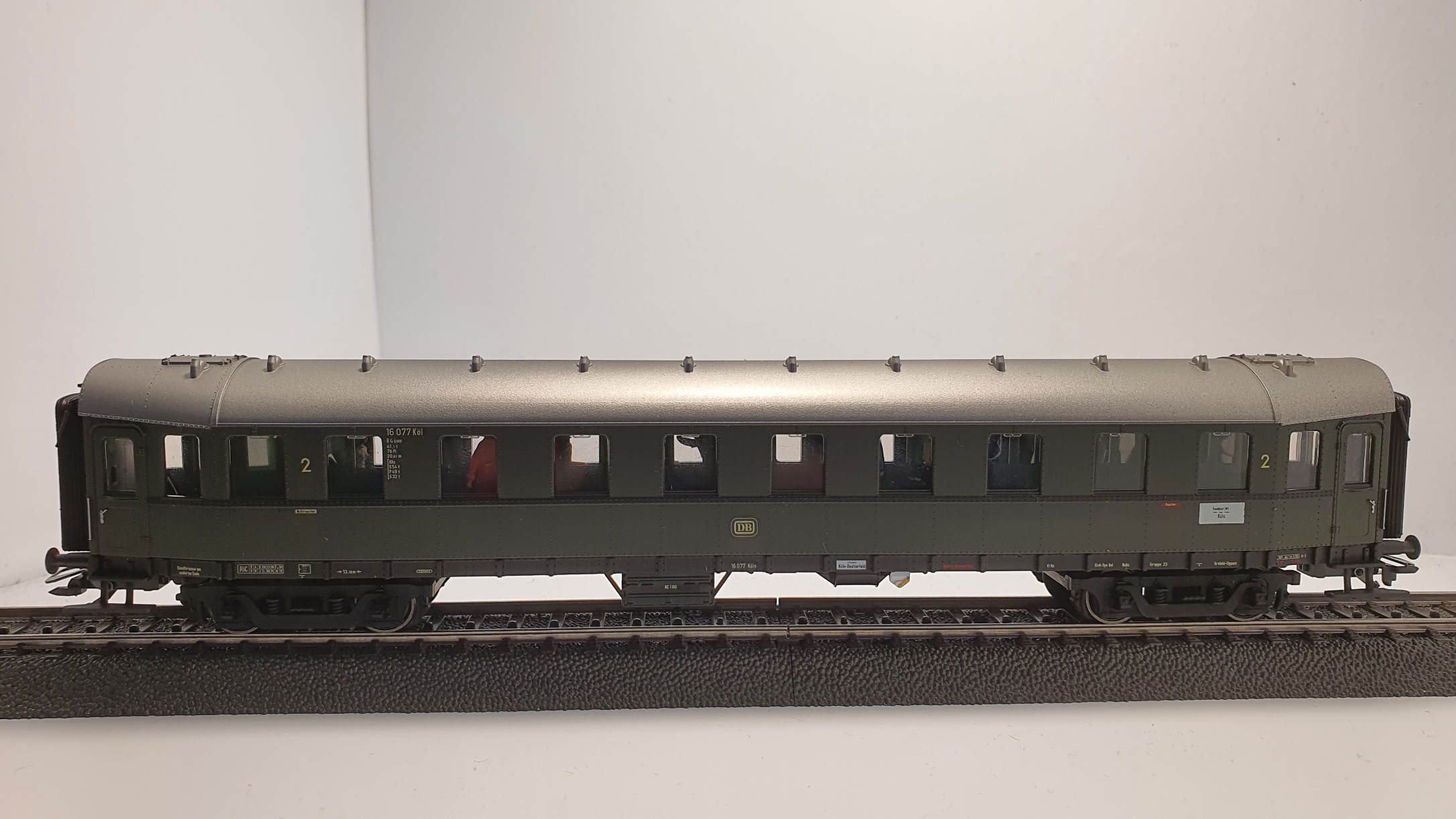 Flaschengrüne Grundfarbgebung. Zuglauf: Frankfurt(M)-Gießen-Siegen-Troisdorf-Köln. Betriebszustand um 1959.  Detaillierte Ausführung im vollen Längenmaßstab. Typspezifisch gestalteter Unterboden und Schwanenhals-Drehgestelle.