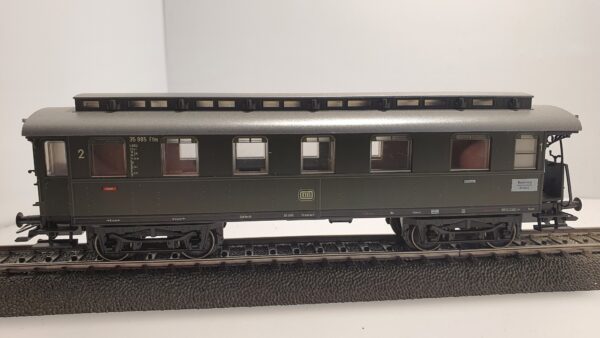 1. und 2. Klasse. Früherer BC4i Pr14, 3. Bauserie. Ausführung mit einer offenen Endbühne und einem geschlossenen Übergang. Dach und Oberlicht in Umbauausführung. Typspezifische Drehgestelle. Griffstangen, Übergangsblech und Batteriekasten angesetzt.