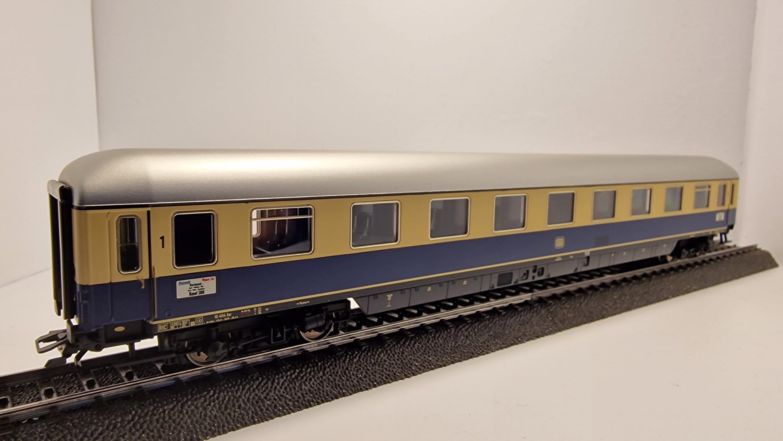 9 Abteile 1. Klasse. Sonderbauart für den F-Zug-Verkehr, Ausführung mit abgerundeten Dachenden. Farbgebung für den „Rheingold“ von 1962.
