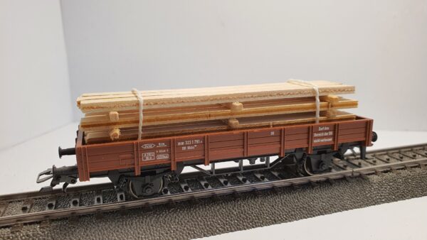 Niederbordwagen mit Kurzkupplung neu ausgerüstet und nachträglich Bretterladung ausgestattet.