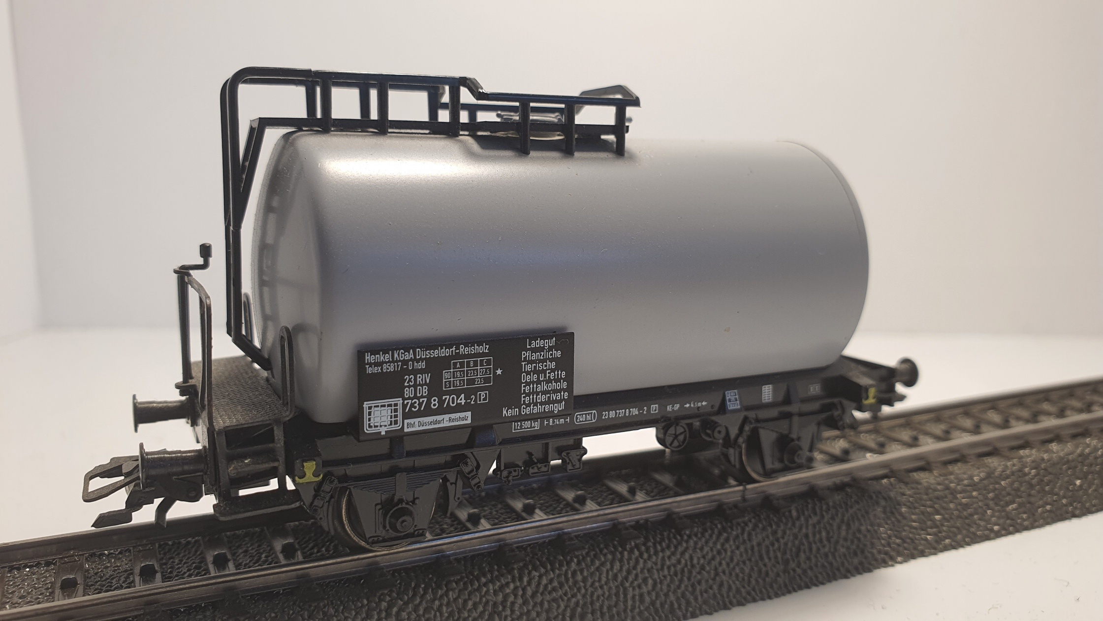 Angesetzte Bremserbühne mit Aufstiegsleitern und Füllplattform. Nachbildung des durchbrochenen Wagenbodens.