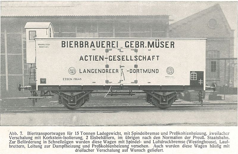 48604 Gedeckter Güterwagen G10 in Verbandsbauart mit Bremserhaus Bierbrauerrei Gebrüder Müser, Dortmund Vorbild Sondermodell zur Intermodellbau 2004 in Dortmund, Auflage 5000 Stck Vorbildfoto: Wikipedia https://de.wikipedia.org/wiki/Datei:KillingProdukte_05.jpg Merkmale Epoche III Bahngesellschaft Privat LÜP 11,0 cm Katalogjahr 2004 Kupplung KKK Wagennummer 19645 Andere ansehen: 46613 46202 << Zurück zur Liste