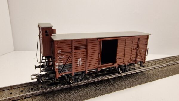 mit kurzem Bremserhaus (Sparbremserhaus) und Endfeldverstärkung. Deutschen Bundesbahn (DB). Betriebszustand um 1958.